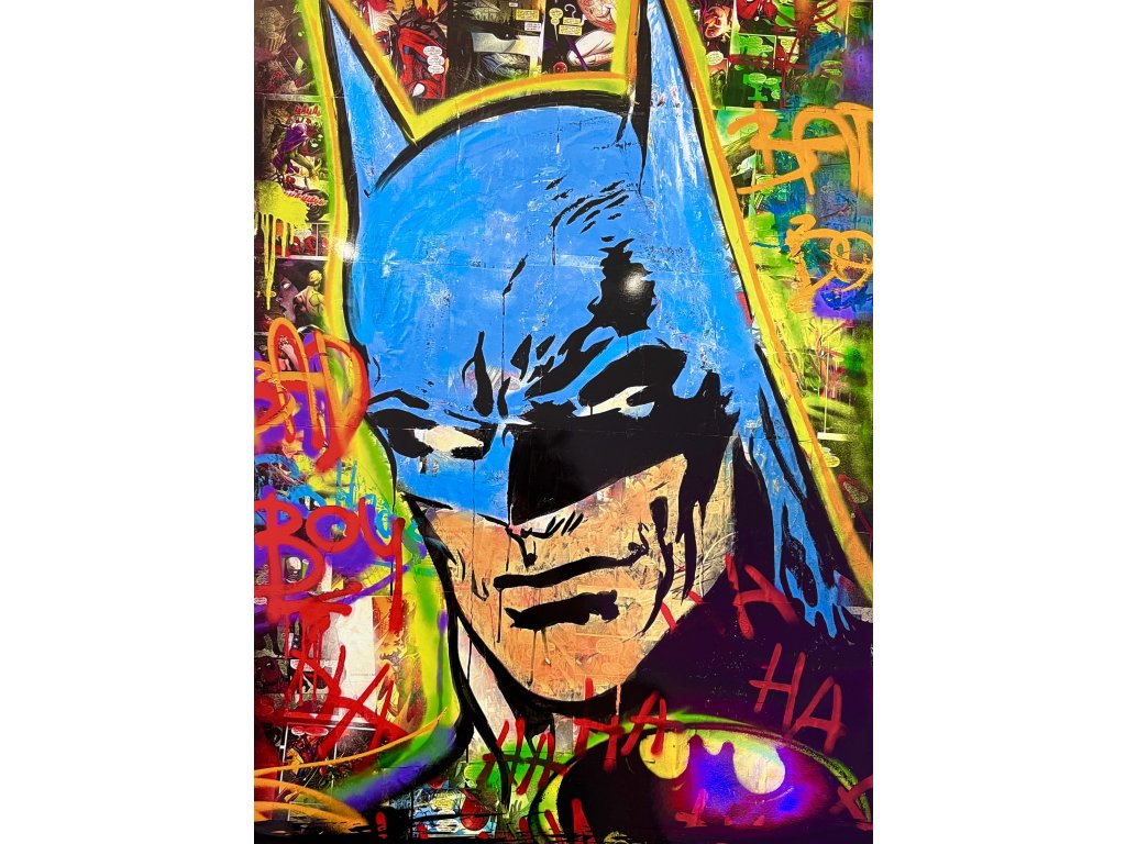 Motiv legendárního rebela na motorce v mixu amerických symbolů, popkulturních výstřižků a surového street-artu. Výrazná kompozice s nápisem „BAD BOY“ nese silný vizuální statement.