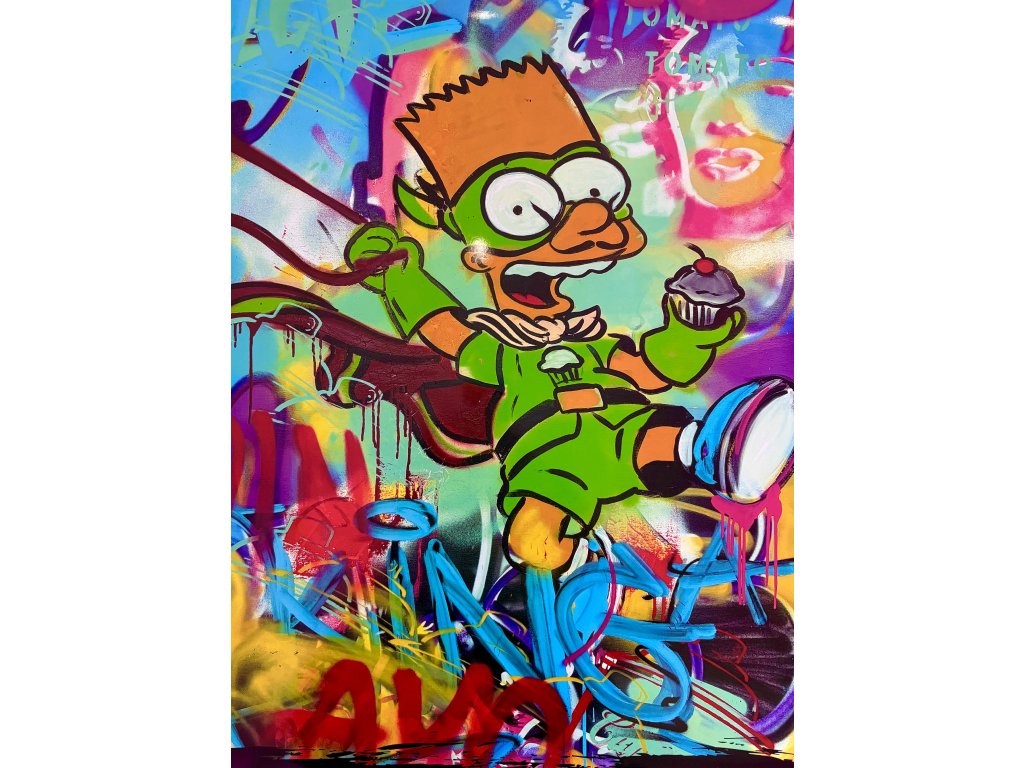 Luxusní motiv s ikonickou lahvičkou parfému v explozivním mixu neonových barev a graffiti detailů. Intenzivní tahy štětcem a vrstvení barevných struktur dodávají dílu moderní...